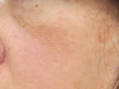 老人性色素斑(ろうじんせいしきそはん):別名「日光性色素斑」と呼ばれ、シミの中で最も多いタイプです。その名の通り、年齢を重ねるとできやすく、日光(紫外線)によって現れるため、顔以外にも手の甲や腕にもできます。