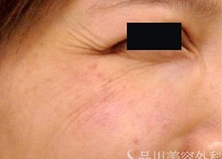 皮膚の老化に伴って発生するシワです。新陳代謝の衰えや保湿性の劣化、乾燥や、紫外線によるダメージが主な原因です。