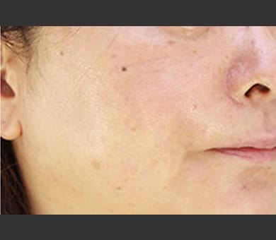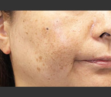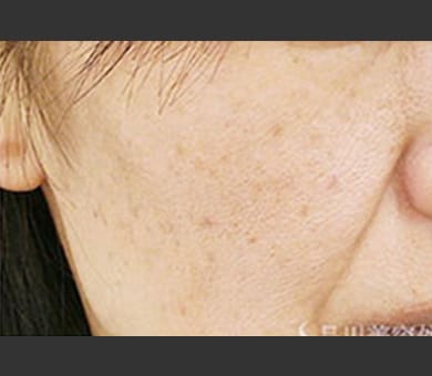 - A 症状により輪ゴムでパチッと弾かれたような痛みが出ることがあります。特に濃いシミやそばかす、ホクロなどの色素の濃い部分は光が反応しやすくなるため、多少痛みが強くなる場合があります。痛みに弱い方やご心配な方は診察時にドクターまでご相談ください。