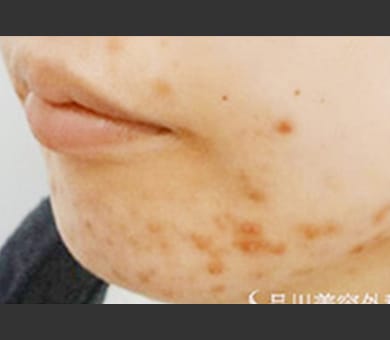 ニキビ跡や赤み部分の治療に関しては、一度の治療で劇的な効果が見込めませんが、照射を繰り返していく度に徐々に薄くなり、ニキビは徐々にできにくい肌質になっていきます。ニキビ治療に関しては「ケミカルピーリング」も併せて受けていただくとより効果的です。- ※黒浮きは出ない場合もあります